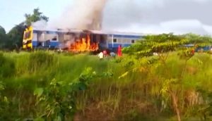୬. ଅଚାନକ ଟ୍ରେନ ଇଞ୍ଜିନରେ ଲାଗିଗଲା ନିଆଁ l କିନ୍ତୁ ଚାଳକଙ୍କ ଉପସ୍ଥିତ ବୁଦ୍ଧି ଯୋଗୁ ବଞ୍ଚିଗଲା ଯାତ୍ରୀଙ୍କ ଜୀବନ l ବିହାର ପୂର୍ବ-ଚମ୍ପାରଣ ଜିଲ୍ଲା ଭେଲବା ଷ୍ଟେସନ ନିକଟରେ ଏହି ଅଗ୍ନିକାଣ୍ଡ ହୋଇଛି। ଡ୍ରାଇଭରଙ୍କ ଉପସ୍ଥିତ ବୁଦ୍ଧି ଯୋଗୁ ଶହଶହ ଯାତ୍ରୀଙ୍କ ଜୀବନ ରକ୍ଷା କରାଯାଇପାରିଥିବା ବେଳେ ଦମକଳ ବାହିନୀ ପହଞ୍ଚି ନିଆଁକୁ ଆୟତ୍ତ କରିଛନ୍ତି।