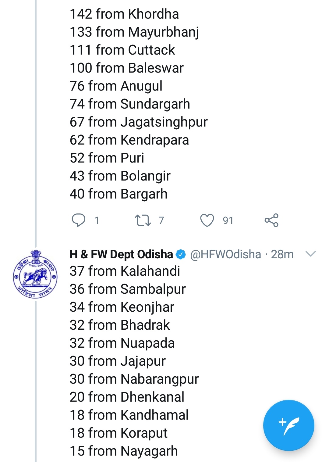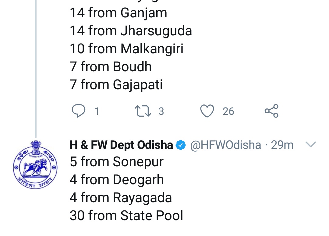 ଏନେଇ ଟ୍ୱିଟ୍ ଯୋଗେ ସୂଚନା ଦେଇଛି ରାଜ୍ୟ ସ୍ୱାସ୍ଥ୍ୟ ଓ ପରିବାର କଲ୍ୟାଣ ବିଭାଗ ।