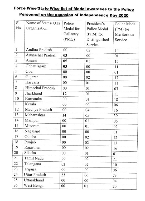 ମନ୍ତ୍ରଣାଳୟର ବିଜ୍ଞପ୍ତି ଅନୁଯାୟୀ ବିଭିନ୍ନ ରାଜ୍ୟ, କେନ୍ଦ୍ରଶାସିତ ଅଞ୍ଚଳରୁ ସେଣ୍ଟ୍ରାଲ୍ ଆର୍ମଡ୍ ପୋଲିସ ଫୋର୍ସ (ସିଆରପିଏଫ୍) ଏବଂ ଅନ୍ୟ ସଙ୍ଗଠନରୁ ୨୧୫ ଜଣ କର୍ମୀ ଗାଲେଣ୍ଟାରୀ ପୋଲିସ ମେଡାଲ୍ ପାଇବେ ।