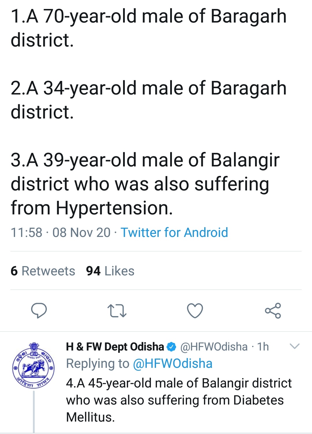 ଏନେଇ ଟ୍ୱିଟ୍ କରିଛି ରାଜ୍ୟ ସ୍ୱାସ୍ଥ୍ୟ ଓ ପରିବାର କଲ୍ୟାଣ ବିଭାଗ।