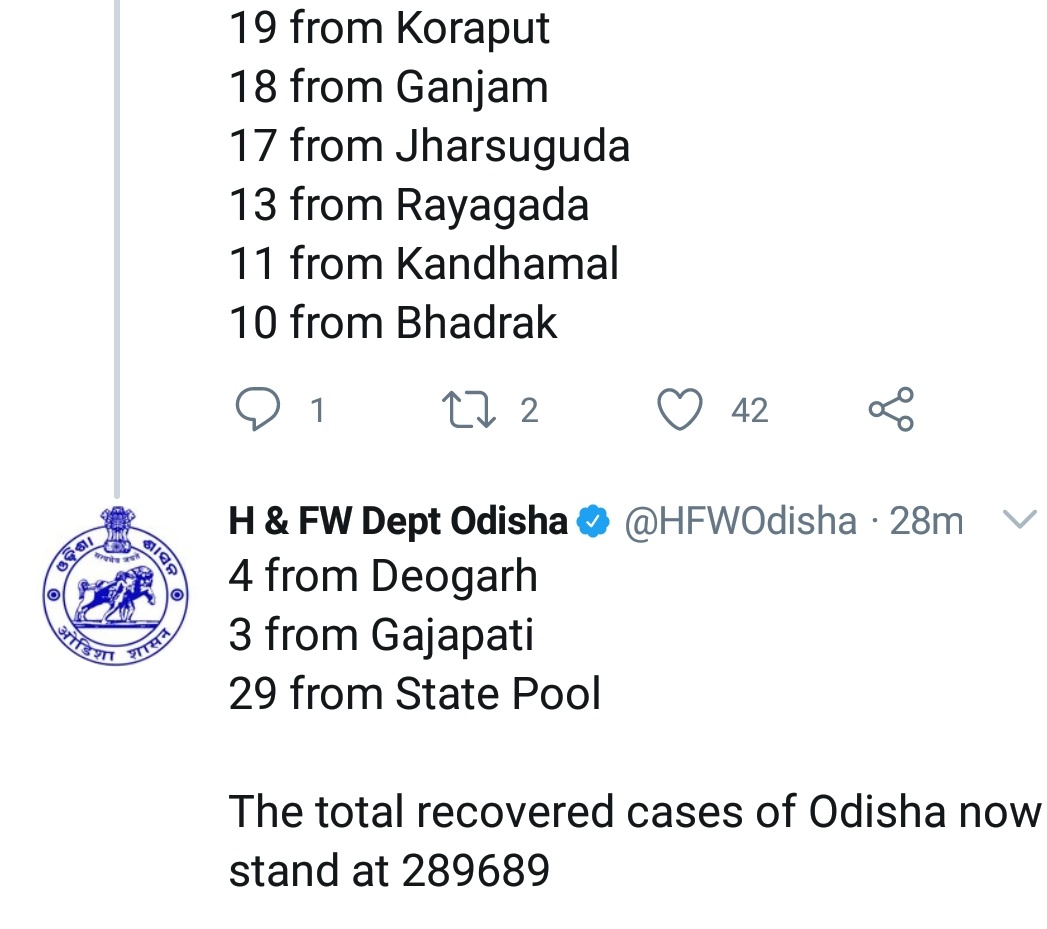 ଏନେଇ ସୂଚନା ଦେଇଛନ୍ତି ରାଜ୍ୟ ସ୍ୱାସ୍ଥ୍ୟ ଓ ପରିବାର କଲ୍ୟାଣ ବିଭାଗ।