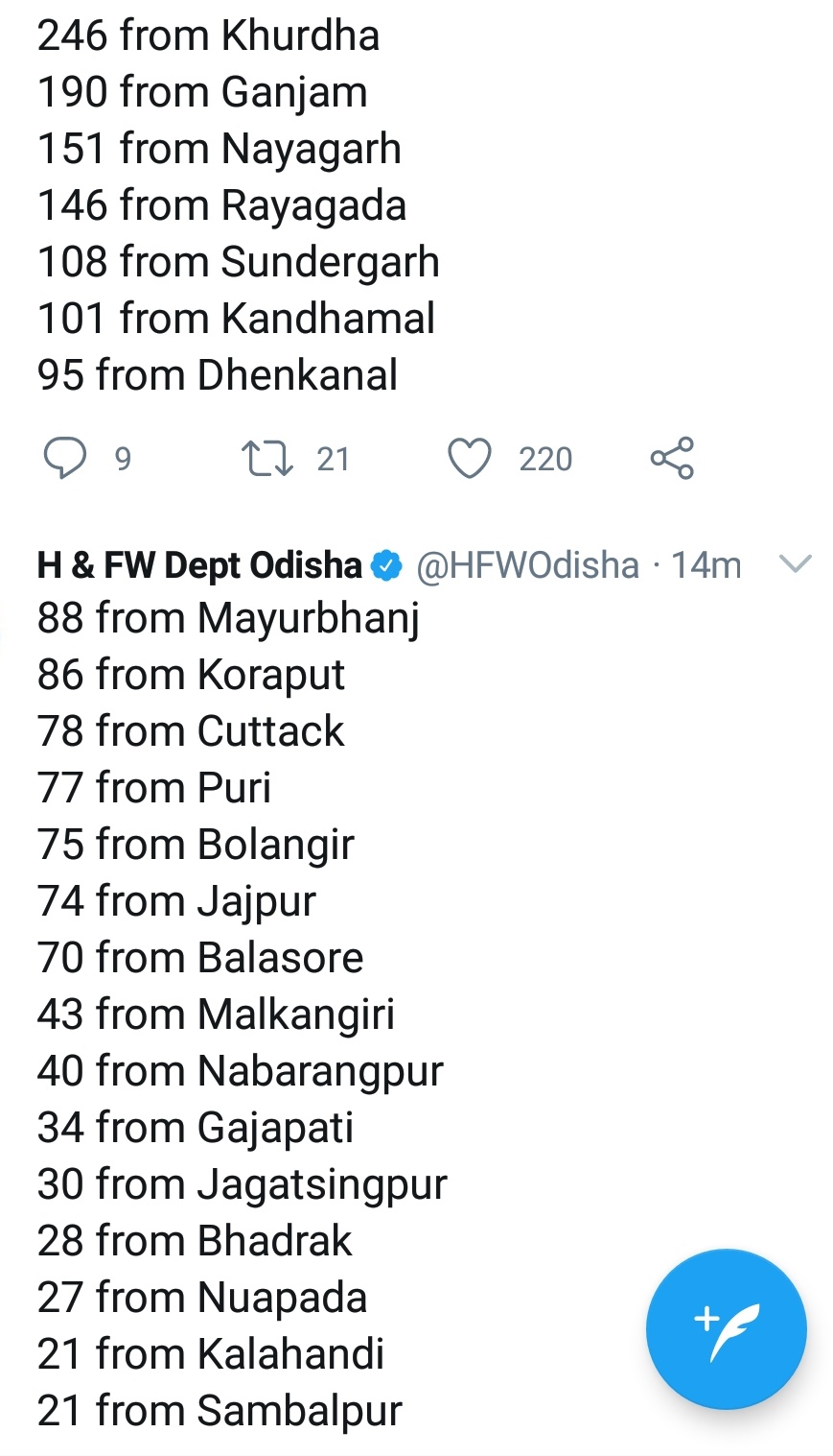 ଉଲ୍ଲେଖଯୋଗ୍ୟ, ଓଡିଶାରେ ବର୍ତ୍ତମାନ ସୁଦ୍ଧା ୭୨,୭୧୮ଟି ସକ୍ରିୟ ମାମଲା ରହିଥିବା ବେଳେ ମୋଟ୍ ୫୦,୫୦୩ ଜଣ ଆରୋଗ୍ୟ ଲାଭ କରିଛନ୍ତି । ଏଥିସହିତ ୩୯୦ ଜଣ ମୃତ୍ୟୁବରଣ କରିଛନ୍ତି ।