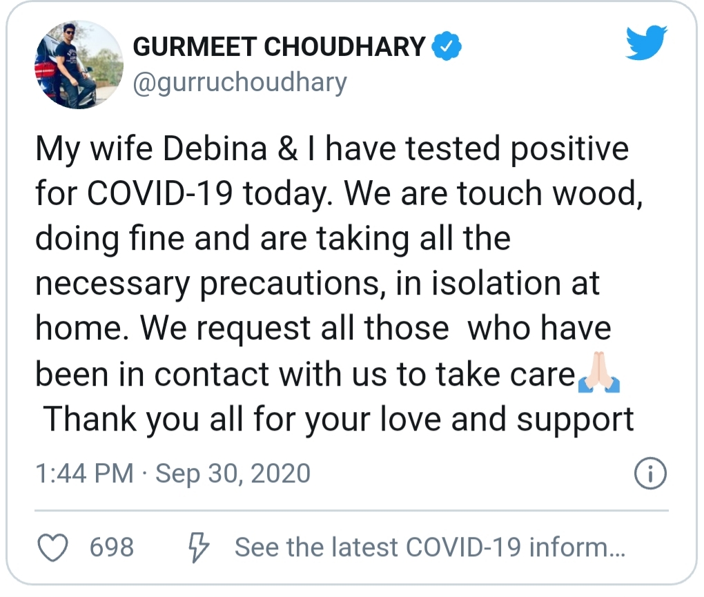 ମୁମ୍ବାଇ: ୨୦୦୮ ମସିହାରେ ରାମାୟଣରେ ପ୍ରଭୁ ରାମ ଓ ସୀତାଙ୍କ ଭୂମିକାରେ ଅଭିନୟ କରି ଲୋକଙ୍କ ପ୍ରଶଂସା ସାଉଁଟି ଥିବା ଉଭୟ ରିଲ ଓ ରିୟଲ ଲାଇଫ କପୁଲ ଗୁରମିତ ଓ ଦେବୀନାଙ୍କୁ କରୋନା ।
