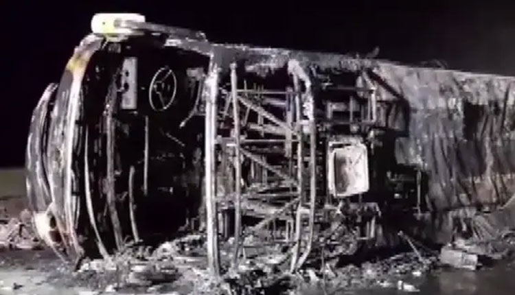 ମୁମ୍ବାଇ: ବିଳମ୍ବିତ ରାତିରେ ଅଘଟଣ। ଜଳିଗଲା ଯାତ୍ରୀବାହୀ ବସ। ପୋଡ଼ି ହୋଇଗଲେ ୨୫ ଯାତ୍ରୀ। ବିଳମ୍ବିତ ରାତିରେ ଏଭଳି ଏକ ଅଘଟଣ ଘଟିଛି। ମହାରାଷ୍ଚ୍ରର ବୁଲଧନରେ ଏହି ଦୁର୍ଘଟଣା ଘଟିଛି। ଯାତ୍ରୀବାହୀ ବସଟି ୟଭଟମଲରୁ ପୁଣେ ଆସୁଥିବା ବେଳେ ସମୃଦ୍ଧି ମହାମାର୍ଗରେ ଅଗ୍ନିକାଣ୍ଡର ଶିକାର ହୋଇଛି। ରାତି ୨ଟା ସମୟରେ ଏହି ଅଘଟଣ ଘଟିଥିବା ସୂଚନା ରହିଛି। ତେବେ ନିଆଁ କେମିତି ଯାତ୍ରୀବାହୀ ବସରେ ଲାଗିଲା ତାହା ଅସ୍ପଷ୍ଟ ରହିଛି।