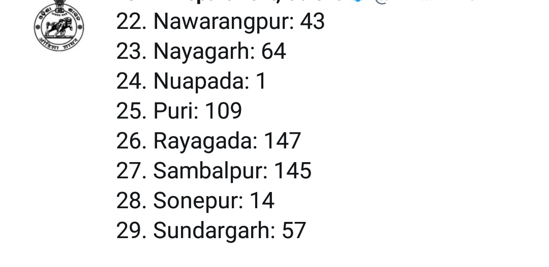 ଏହାଛଡା ଗତ ୨୪ ଘଣ୍ଟା ମଧ୍ୟରେ ରାଜ୍ୟର ପ୍ରାୟ ୨୯ ଜିଲ୍ଲାରୁ ଏହି ୨୮୧୯ ଜଣ ନୂଆ ଆକ୍ରାନ୍ତ ଚିହ୍ନଟ ହୋଇଥିବା ବେଳେ ପାଖାପାଖି ୧୯୨୭ ଜଣ ସୁସ୍ଥ ହୋଇଛନ୍ତି ।