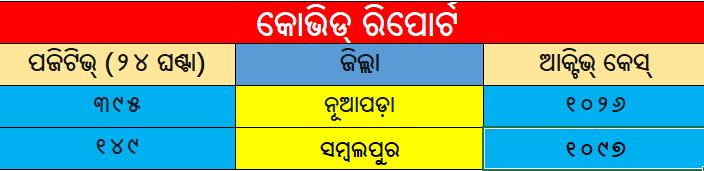 ଏହାସହ ରେଡ ଜୋନରେ ଥିବା ସମ୍ୱଲପୁର ଓ ନୂଆପଡ଼ା ବି ରାଜ୍ୟର ଚିନ୍ତା ବଢ଼ାଇଛନ୍ତି । ଏହି ଦୁଇ ଜିଲ୍ଲାରେ କ୍ରମାଗତ ପଜିଟିଭ୍ କେସ୍ ବଢି ଚାଲିଛି । ନୂଆପଡ଼ାରୁ ଗତ ୨୪ ଘଣ୍ଟାରେ ୩୯୫ ଆକ୍ରାନ୍ତ ଚିହ୍ନଟ ହୋଇଥିବା ବେଳେ ଆକ୍ଟିଭ୍ କେସ୍ ସଂଖ୍ୟା ୧ହଜାର ୨୬କୁ ବୃଦ୍ଧି ପାଇଛି ।