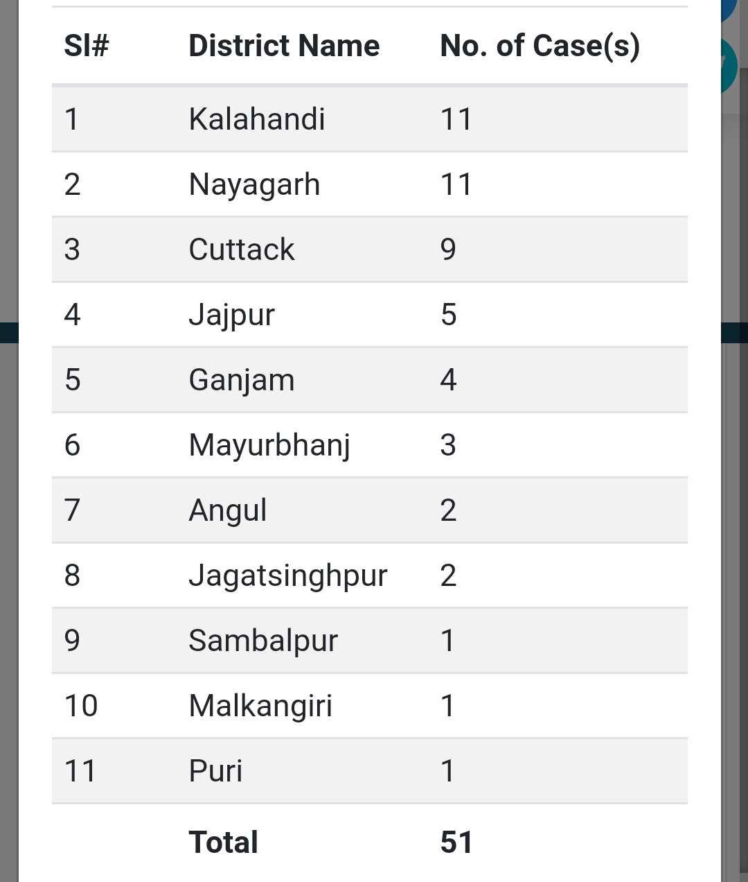 ଭୁବନେଶ୍ୱର: ରାଜ୍ୟରେ ଦିନକୁ ଦିନ କରୋନା ଆକ୍ରାନ୍ତଙ୍କ ସଂଖ୍ୟା ବଢ଼ୁଥିବା ବେଳେ ବୁଧବାର ଦିନ ଆଉ ୫୧ ନୂଆ ମାମଲା ଚିହ୍ନଟ ହୋଇଛି।