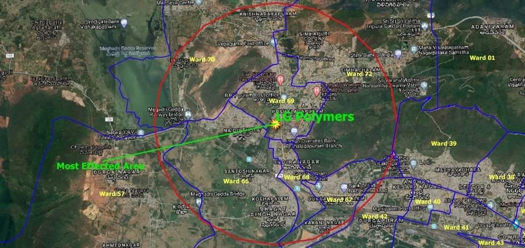 ୧-୧.୫ କିଲୋମିଟର ବ୍ୟାସାର୍ଦ୍ଧରେ ଏହି ଗ୍ୟାସ ବ୍ୟାପିଥିବା ବେଳେ ଏହାର ଦୁର୍ଗନ୍ଧ ପାଖାପାଖି ୨-୨.୫ କିଲୋମିଟର ପର୍ଯ୍ୟନ୍ତ ବ୍ୟାପିଛି ବୋଲି ବିଶାଖାପାଟଣା ନଗର ପୋଲିସ କମିଶନର ଆର.କେ ମୀନା ଏଏନଆଇ ଗଣମାଧ୍ୟମକୁ କହିଛନ୍ତି।