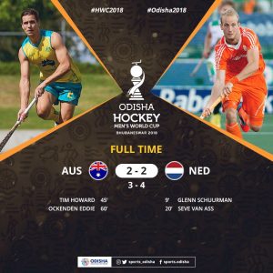 ଭୁବନେଶ୍ୱର: କଳିଙ୍ଗ ଷ୍ଟାଡ଼ିୟମରେ ଅନୁଷ୍ଠିତ ହେଉଥିବା ଓଡ଼ିଶା ପୁରୁଷ ବିଶ୍ୱକପ ହକି ସେମିଫାଇନାଲରେ ଶକ୍ତିଶାଳୀ ଅଷ୍ଟ୍ରେଲିଆକୁ ୪ (୨) – ୩ (୨) ଗୋଲରେ ପରାସ୍ତ କରି ନେଦରଲାଣ୍ଡ ଫାଇନାଲ ଖେଳିବାକୁ ଯୋଗ୍ୟତା ହାସଲ କରିପାରିଛି । ଅନ୍ୟ ଏକ ସେମିଫାଇନାଲରେ ବେଲଜିୟମ ଦଳ ଇଂଲଣ୍ଡ ଦଳକୁ ୦-୬ ଗୋଲରେ ପରାସ୍ତ କରିବା ଫଳରେ ରବିବାର ଫାଇନାଲରେ ନେଦରଲାଣ୍ଡ ସହିତ ମୁକାବିଲା କରିବ ।