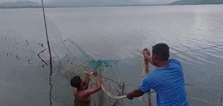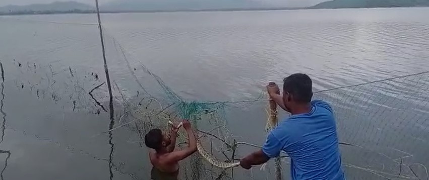 ମାଛ ଜାଲରେ ଲାଗିଥିବା ଅଜଗର ସାପ ଉଦ୍ଧାର