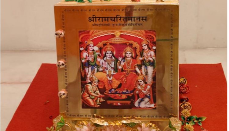 ଏହାକୁ ସ୍ଥାପନ କରିବା ସମୟରେ ରାମ ମନ୍ଦିର ନିର୍ମାଣର ପ୍ରଭାରୀ ଗୋପାଳ ରାଓ, ପୂଜାରୀ ପ୍ରେମଚନ୍ଦ ତ୍ରିପାଠୀ ସହିତ ଅନ୍ୟମାନେ ଉପସ୍ଥିତ ଥିଲେ । ଏହି ରାମାୟଣ ପୁସ୍ତକର ପ୍ରତ୍ୟେକ ପୃଷ୍ଠା ତମ୍ବାରେ ନିର୍ମିତ । ଏହା ଉପରେ ରାମଚରିତ ମାନସର ଶ୍ଲୋକ ଅଙ୍କିତ ଅଛି । ୧୦,୯୦୨ ଛନ୍ଦ ଥିବା ଏହି ମହାକାବ୍ୟର ପ୍ରତ୍ୟେକ ପୃଷ୍ଠାରେ ୨୪ କ୍ୟାରେଟ ସୁନାର ପ୍ରଲେପ ଦିଆଯାଇଛି । ଏହି ପୁସ୍ତକର ଓଜନ ୧.୫ କ୍ୱିଂଟାଲରୁ ଅଧିକ ରହିଛି । ଏହାର ଆନୂମାନିକ ମୂଲ୍ୟ ୫ କୋଟିରୁ ଊର୍ଦ୍ଧ୍ୱ ହେବ ।