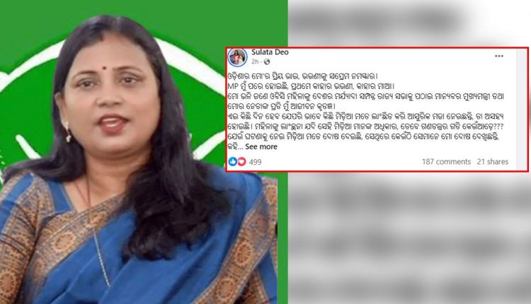 ସେ ନିଜ ଲେଖାରେ ଆହୁରି କହିଛନ୍ତି, MP ମୁଁ ପରେ ହୋଇଛି, ପ୍ରଥମେ କାହାର ଭଉଣୀ, କାହାର ମାଆ। ମୋ ଭଳି ଜଣେ ଓବିସି ମହିଳାଙ୍କୁ ଦେଶର ମର୍ଯ୍ୟାଦା ସମ୍ପନ୍ନ ରାଜ୍ୟ ସଭାକୁ ପଠାଇଥିବାରୁ ମାନ୍ୟବର ମୁଖ୍ୟମନ୍ତ୍ରୀ ତଥା ମୋର ନେତାଙ୍କ ପ୍ରତି ମୁଁ ଆଜୀବନ କୃତଜ୍ଞ। ଏଇ କିଛି ଦିନ ହେବ ଯେପରି ଭାବେ କିଛି ମିଡ଼ିଆ ଲାଂଛିତ କରି କହୁଛନ୍ତି, ତା ଅସହ୍ୟ ହୋଇଛି। ମହିଳାଙ୍କୁ ଲାଂଚ୍ଛନା ଯଦି ସେହି ମିଡ଼ିଆମାନଙ୍କ ଅଧିକାର, ତେବେ ଗଣତନ୍ତ୍ରର ଗତି କେଉଁଆଡ଼େ ବୋଲି ସେ ପ୍ରଶ୍ନ କରିଛନ୍ତି ।
