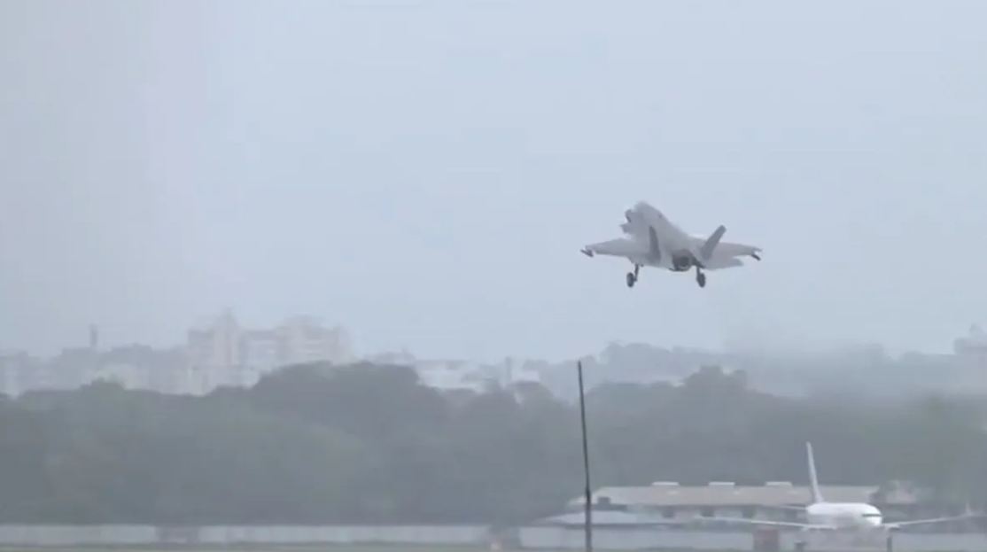 #WATCH | Kerala: The British Navy's F-35 fighter aircraft, which made an emergency landing at Thiruvananthapuram International Airport on June 14, takes off from the airport. pic.twitter.com/RT9vlsL73W