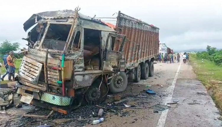 ଦୁର୍ଘଟଣା ପରେ ଜଳିଗଲା ଟ୍ରକ୍, ଡ୍ରାଇଭର ଜୀବନ୍ତ ଦଗ୍ଧ