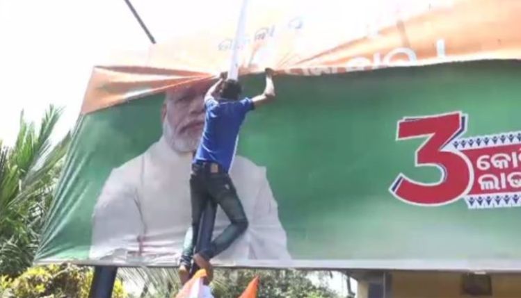 ରାସ୍ତା ଘାଟ, ଛକ ବଜାର ଓ ବିଭିନ୍ନ କାର୍ଯ୍ୟାଳୟରେ ଲାଗିଥିବା ହୋର୍ଡ଼ିଂ, ପୋଷ୍ଟର ଓ ବ୍ୟାନରକୁ ହଟାଇ ଦିଆଯିବା କାର୍ଯ୍ୟ ଆରମ୍ଭ ହୋଇଛି । ଏଥର ନିର୍ବାଚନ କମିଶନ ନିର୍ବାଚନ ଆଚରଣ ବିଧି କଡାକଡି ହେବ ବୋଲି ଘୋଷଣା କରିଛନ୍ତି । ଯାହାଫଳରେ ଏପରି ଦୃଶ୍ୟ ସାମ୍ନାକୁ ଆସିଛି ।
