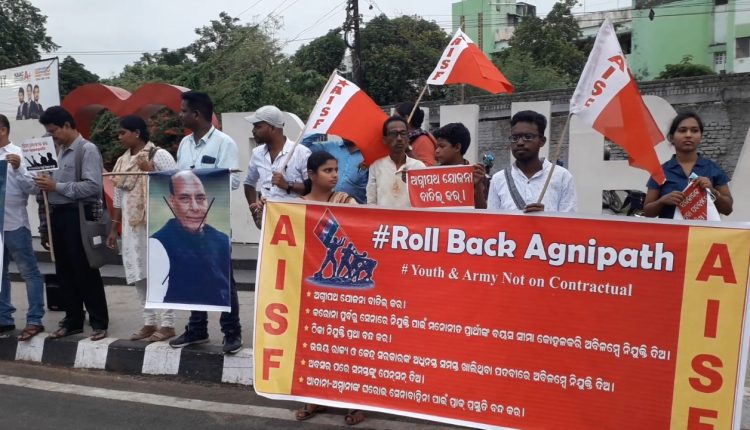 ଭୁଵନେଶ୍ଵର: ସେନାରେ ୪ଵର୍ଷିଆ ଚୁକ୍ତି ଭିତ୍ତିକ ଠିକା ନିଯୁକ୍ତି ପାଇଁ ପ୍ରଣୟନ ହୋଇଥିଵା ଅଗ୍ନୀପଥ ଯୋଜନା ପ୍ରତ୍ଯାହାର ଦାଵିରେ ଅଖିଳ ଭାରତ ଛାତ୍ର ସଂଘ ,ଏଆଇଏସ୍ଏଫ୍ ପକ୍ଷରୁ ଓଡିଶା ଵିଧାନ ସଭା ସମ୍ମୁଖରେ ଵିକ୍ଷୋଭ ପ୍ରଦର୍ଶନ ସହ କୁଶ ପୁତ୍ତଳିକା ଦାହ କରାଯାଇଛି।୨୦୧୯ ପରଠାରୁ ସେନାରେ ନିଯୁକ୍ତି ଵନ୍ଦ ଥିଵା ଵେଳେ କରୋନା ପୁର୍ଵରୁ ଖାଲିଥିଵା ପଦଵୀ ପୁରଣ ନିମନ୍ତେ ଏପର୍ଯ୍ଯନ୍ତ ନିଯୁକ୍ତି ପ୍ରକ୍ରିୟା ଶେଷ କରାଯାଇ ନାହିଁ।ସେନା ଵାହିନୀରେ ଏକ ଲକ୍ଷ ୨୫ହଜାର ପଦଵୀ ଖାଲି ଥିଲେ ସୁଧା ସେହି ପଦଵୀ ପୁରଣ ପରିଵର୍ତ୍ତେ, ଅଗ୍ନୀପଥ ଯୋଜନା ନାମରେ ମାତ୍ର ୪ଵର୍ଷ ନିମନ୍ତ ଠିକାରେ ଚୁକ୍ତି ଭିତ୍ତିକ ନିଯୁକ୍ତି ପାଇଁ ସରକାରଙ୍କ ନିଷ୍ପତ୍ତି ଗ୍ରହଣ ରାଷ୍ଟ୍ରର ପ୍ରତିରକ୍ଷା ଵ୍ଯଵସ୍ଥାକୁ ଦୁର୍ଵଳ କରାଇଵାର ସୁଯୋଗ ସୃଷ୍ଟି କରିଛି। ସୂଚନା ଯୋଗ୍ଯ ଯେ ଏହି ଯୋଜନା ଘୋଷଣା ପୁର୍ଵରୁ ଵରିଷ୍ଠ ସେନା ଅଧିକାରୀ ମାନଙ୍କୁ ପୁନଃ ନିଯୁକ୍ତି କରାଯାଇଛି। ଅଗ୍ନୀପଥ ଯୋଜନା ଅନୁସାରେ ୪ଵର୍ଷ ସେନାରେ କାର୍ଯ୍ଯ କରିଵା ପରେ ୭୫%ରୁ ଉର୍ଦ୍ଧ୍ଵ ଅଗ୍ନୀଵୀରଙ୍କୁ ଚାକିରୀରୁ ଵାହାର କରିଦିଆଯିଵା ଵେଳେ ସେମାନଙ୍କୁ ସ୍ଥାୟୀ ସେନା କର୍ମଚାରୀଙ୍କୁ ମିଳୁଥିଵା କୌଣସି ସୁଵିଧା ସୁଯୋଗ ଅଗ୍ନୀଵୀରମାନଙ୍କୁ ମିଳିଵ ନାହିଁ। ସେନାରୁ ଵିଦାହୋଇଥିଵା ଏହି ୭୫% ଅଗ୍ନୀଵୀରମାନଙ୍କର ଅନିଶ୍ଚିତ ଭଵିଶ୍ଯତର ସୁଯୋଗ ଆତଙ୍କଵାଦୀ ଓ ଉଗ୍ରପନ୍ଥୀ ସଂଗଠନମାନେ ନେଵାର ଦ୍ଵାର ଉନ୍ମୁକ୍ତ କରିଵ। ଏହା ଦେଶର ସାର୍ଵଭୌମତ୍ଵ ଓ ଆଭ୍ଯନ୍ତରୀଣ ନିରାପତ୍ତା ପ୍ରତି ଏକ ଆହ୍ଵାନ ଭାଵେ ଉଭା ହେଵ। ଭାରତୀୟ ସେନାକୁ ଦୁର୍ଵଳ କରି ଅମ୍ଵାନୀ-ଆଦାନୀଙ୍କ ଭଳି ପୁଞ୍ଜିପତିଙ୍କ ନିଜସ୍ଵ ମାଲିକାନାର ସେନାଵାହିନୀ ଗଠନ ପାଇଁ ସହାୟକ ହେଵ। ସମସ୍ତ ରାଷ୍ଟ୍ରୀୟ ସମ୍ଵଳ ଯଥା ରେଳ, ପ୍ରତିରକ୍ଷା ଉତ୍ପାଦନ ଶିଳ୍ପ, ଵୀମାନ ଵନ୍ଦର, ଵନ୍ଦର, ପୋତାଶ୍ରୟ, ଭାରତୀୟ ଜୀଵନ ଵୀମା, ଵ୍ଯାଙ୍କ, GAIL, HAL, BHEL, SAIL ଇତ୍ଯାଦିକୁ ମୁଷ୍ଟିମେୟ ପୁଞ୍ଜିପତିଙ୍କ ଲାଭ ଲୋଭ ଚରତାର୍ଥ କରିଵା ପାଇଁ ଵିକ୍ରୀ କରି ଦେଇଥିଵା ସ୍ଥଳେ ସ୍ଥାୟୀ ନିଯୁକ୍ତିର ସମସ୍ତ ଦ୍ଵାର ଵନ୍ଦ କରି ଦିଆ ଯାଇଛି। ସରକାର ଵାର୍ଷିକ ୨କୋଟି ନିଯୁକ୍ତିର ପ୍ରତିଶୃତି ଦେଇ ୧୨କୋଟି ନିଯୁକ୍ତି ସମାପ୍ତ କରି ୪୫ ଵର୍ଷର ସର୍ଵକାଳୀନ ଵେରୋଜଗାରୀ ରେକର୍ଡ଼ ସୃଷ୍ଟି କରିଛନ୍ତି।ନିଯୁକ୍ତି ଦେଵାରେ ଅକ୍ଷମ ସରକାର ଏହି ରାଷ୍ଟ୍ର ସ୍ଵାର୍ଥ ଵିରୋଧୀ ଅଗ୍ନୀପଥ ଯୋଜନା ପାଇଁ ସମଗ୍ର ଦେଶରେ ପ୍ରତିଵାଦର ନିଆଁ ଜଳୁଛି।ତେଣୁ ଅଗ୍ନୀପଥ ଯୋଜନା ପ୍ରତ୍ଯାହାର କର,କରୋନା ପୁର୍ଵରୁ ସେନାରେ ନିଯୁକ୍ତି ପାଇଁ ସେନାରେ ମନୋନିତ ପ୍ରାର୍ଥୀଙ୍କଵୟସସୀମା କୋହଳ କରି ଅଵିଳମ୍ଵେ ନିଯୁକ୍ତି ଦିଆଯାଉ, ଠିକା ନିଯୁକ୍ତି ପ୍ରଥା ଵନ୍ଦ କର,ଉଭୟ କେନ୍ଦ୍ର ଓ ରାଜ୍ଯ ସରକାରଙ୍କ ସମସ୍ତ ଖାଲିଥିଵା ପଦଵୀରେ ଅଵିଳମ୍ଵେ ନିଯୁକ୍ତି ଦିଅ,ଅଵସର ପରେ ସମସ୍ତଙ୍କୁ ପେନସନ ଦିଅ,ଆଦାନୀ-ଆମ୍ଵାନୀଙ୍କ ନିଜସ୍ଵ ସେନାଵାହିନୀ ପାଇଁ ସହାୟତା ଵନ୍ଦ କର ଦାଵିରେ ଏହି ଆନ୍ଦୋଳନ ହୋଇ ଅଛି। ଏହି ପୃଷ୍ଠଭୁମିରେ ଏଆଇଏସ୍ଏଫ୍ ପକ୍ଷରୁ ଅଗ୍ନୀପଥ ଯୋଜନା ପ୍ରତ୍ଯାହାର ଦାଵିରେ ଦେଶ ଵ୍ଯାପୀ ଆନ୍ଦୋଳନ ଚାଲିଥିଵା ଵେଳେ ଆଜି ଓଡିଶା ଵିଧାନସଭା ସମ୍ମୁଖରେ ଆନ୍ଦୋଳନ ଅନୁଷ୍ଠିତ ହୋଇଅଛି।ଏହି ଆନ୍ଦୋଳନକୁ ଵିଭିନ୍ନ ଵାମପନ୍ଥୀ,ଗଣତାନ
