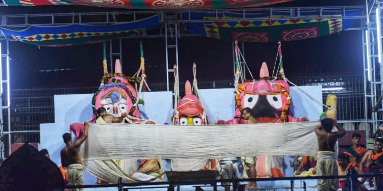 ପୁରୀ: ସରିଛି ମହାପ୍ରଭୁଙ୍କ ମହାସ୍ନାନ। ୧୦୮ ଗରା ସୁବାସିତ ଜଳରେ ସ୍ନାନ କରିଥିବାରୁ ମହାପ୍ରଭୁଙ୍କୁ ଜ୍ଵର ହୋଇଛି। ଏଥିପାଇଁ ମହାପ୍ରଭୁ ଅଣସର ଗୃହରେ ରହିଛନ୍ତି। ଅଣସର ପିଣ୍ଡିରେ ମହାପ୍ରଭୁଙ୍କ ଗୁପ୍ତ ନୀତି କରାଯାଉଛି।