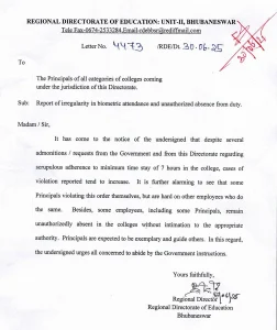 ସମସ୍ତ ପ୍ରିନ୍ସପାଲ ଏବଂ କର୍ମଚାରୀ ବାୟୋମେଟ୍ରିକ୍ ବ୍ୟବହାର କରିବାକୁ ବାଧ୍ୟ: ଉଚ୍ଚଶିକ୍ଷା ବିଭାଗ