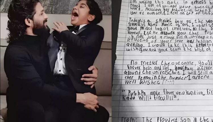ଅୟାନର ସେହି ଚିଠିଟିକୁ ନିଜ ଇନଷ୍ଟାଗ୍ରାମ ଷ୍ଟୋରୀରେ ସେୟାର କରିଛନ୍ତି ପୁଷ୍ପାରାଜ୍ ‘ଅଲ୍ଲୁ’ । ଯେଉଁଥିରେ ନିଜ କୁନି ହାତରେ ଅଙ୍କାବଙ୍କା ଅକ୍ଷରରେ ଅୟାନ୍ ଲେଖିଛି, ‘ପ୍ରିୟ ବାପା, ତୁମର ସଫଳତା, କଠିନ ପରିଶ୍ରମ ଏବଂ ଉତ୍ସାହ ପାଇଁ ମୁଁ କେତେ ଗର୍ବିତ ଅନୁଭବ କରୁଛି ତାହା ଜଣାଇବାକୁ ମୁଁ ଏହି ଚିଠି ଲେଖୁଛି । ଯେତେବେଳେ ମୁଁ ତୁମକୁ  ନମ୍ବର ୧ରେ ଦେଖେ, ସେତେବେଳେ ମୋତେ ଲାଗେ ଯେ ମୁଁ ଦୁନିଆର ଶୀର୍ଷରେ ଅଛି । ଆଜି ବିଶେଷ ଦିନ । କାରଣ ଆଜି ବିଶ୍ବର ସବୁଠାରୁ ବଡ ଆକ୍ସନ ଫିଲ୍ମ ରିଲିଜ୍ ହୋଇଯାଇଛି । ମୁଁ ବୁଝୁଛି ଏବେ ତୁମକୁ ମିଶ୍ରିତ ଭାବନା ଆସୁଥିବ । କିନ୍ତୁ ମୁଁ ଆପଣଙ୍କୁ କଥା ଏହା କହିବାକୁ ଚାହେଁ ଯେ ପୁଷ୍ପା କେବଳ ଏକ ଚଳଚ୍ଚିତ୍ର ନୁହେଁ ବରଂ ଅଭିନୟ ପ୍ରତି ଆପଣଙ୍କର ଉତ୍ସାହ ଏବଂ ଭଲପାଇବାର ପ୍ରତିଫଳନ । ତେଣୁ ଏହି ମୁହୂର୍ତ୍ତଟିକୁ ଉପଯୋଗ ମୁଁ ତୁମକୁ ଏବଂ ତୁମର ପୂରା ଟିମକୁ ଶୁଭକାମନା ଜଣାଉଛି । ଅୟାନ ଆହୁରି ଲେଖିଛି, ଫଳାଫଳ ଯାହା ହେଉନା କାହିଁକି, ତୁମେ ସବୁବେଳେ ମୋର ହିରୋ ଏବଂ ଆଇଡଲ ରହିବ । ତୁମର ବିଶ୍ବରେ ଅନେକ ପ୍ରଶଂସକ ଅଛନ୍ତି, ତଥାପି ମୁଁ ତୁମର ନମ୍ବର ୧ ପ୍ରଶଂସକ ରହିବି । ଜଣେ ଗର୍ବିତ ପୁଅ ତାର ଟପ୍ ଆଇଡଲ ପାଇଁ ଏହି ନୋଟଟି ଲେଖିଛି ।’