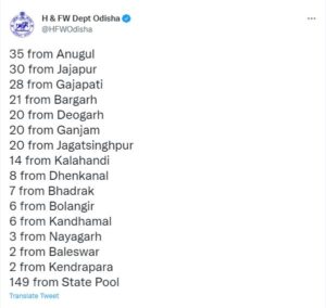 ସେହିପରି ଖୋର୍ଦ୍ଦା ଜିଲ୍ଲାରୁ ୬୦୪, ସମ୍ବଲପୁରରୁ ୩୭୨, କଟକରୁ ୩୪୬, ଝାରସୁଗୁଡ଼ାରୁ ୨୫୪, ନବରଂଗପୁରରୁ ୧୬୯, ମୟୂରଭଂଜରୁ ୧୧୩, କୋରାପୁଟରୁ ୬୩, ସୁବର୍ଣ୍ଣପୁରରୁ ୫୮, କେନ୍ଦୁଝର ଓ ପୁରୀରୁ ୫୪ ଜଣ, ଅନୁଗୁଳରୁ ୩୫, ଯାଜପୁରରୁ ୩୦, ଗଜପତିରୁ ୨୮, ବରଗଡ଼ରୁ ୨୧, ଦେବଗଡ଼, ଗଂଜାମ, ଜଗତସିଂହପୁରରୁ ୨୦ ଜଣ ଲେଖାଏଁ, କଳାହାଣ୍ଡିରୁ ୧୪, ଢେଙ୍କାନାଳରୁ ୮, ଭଦ୍ରକରୁ ୭, ବଲାଙ୍ଗୀର, କନ୍ଧମାଳରୁ ୬-୬, ନୟାଗଡ଼ରୁ ୩, ବାଲେଶ୍ୱର, କେନ୍ଦ୍ରାପଡ଼ାରୁ ୨-୨ ଓ ରାଜ୍ୟପୁଲରୁ ୧୪୯ ଜଣ ଆକ୍ରାନ୍ତ କରୋନାରୁ ସୁସ୍ଥ ହୋଇଛନ୍ତି।