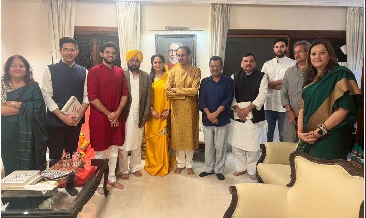 Thank you CM @ArvindKejriwal ji for accepting our humble invite for a cup of tea at Matoshri and coming along with CM @BhagwantMann ji and MPs Sanjay Singh ji and @raghav_chadha today. pic.twitter.com/HOhYAqfyul