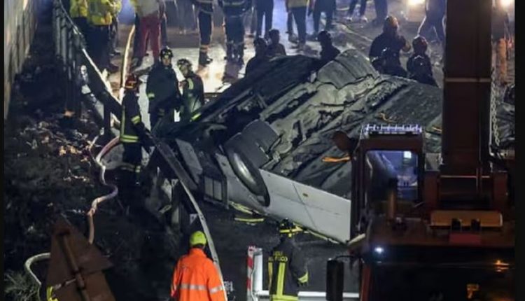 ସୂଚନା ଅନୁଯାୟୀ, ଗତକାଲି ଏକ ପର୍ଯ୍ୟଟକ ଭର୍ତ୍ତି ବସ ଇଟାଲି ଭେନିସ ସହର ଦେଇ ଯାଉଥିବା ସମୟରେ ହଠାତ୍ ବସ୍ଟି ବିପରୀତ ଦିଗକୁ ବୁଲିପଡ଼ି ବ୍ରିଜ ତଳେ ଥିବା ରେଳଲାଇନକୁ ଖସିପଡ଼ିଲା। ପ୍ରାୟ ୫୦ ଫୁଟ୍ ଉପରୁ ବସ୍ଟି ଖସି ବିଜୁଳି ତାର ଉପରେ ପଡ଼ିବାରୁ ଏଥିରେ ନିଆଁ ଲାଗିଯାଇଥିଲା। ଫଳରେ ବସରେ ଥିବା ଯାତ୍ରୀମାନଙ୍କ ମଧ୍ୟରୁ ୨୧ ଜଣଙ୍କର ମୃତ୍ୟୁ ହୋଇଥିବା ବେଳେ ୨୦ରୁ ଅଧିକ ଯାତ୍ରୀ ଗୁରୁତର ହୋଇଛନ୍ତି । ଏହି ବସରେ ଥିବା ଯାତ୍ରୀ ଫ୍ରାନ୍ସ , ଜର୍ମାନ, ୟୁକ୍ରେନର ବାସିନ୍ଦା ବୋଲି ଜଣାପଡ଼ିଛି । ଖବରପାଇ ପୋଲିସ ଘଟଣାସ୍ଥଳରେ ପହଞ୍ଚି ମୃତାହତଙ୍କୁ ଉଦ୍ଧାର କରିଥିଲା । ଉଦ୍ଧାର କାର୍ଯ୍ୟରେ ୨୦ରୁ ଅଧିକ ଆମ୍ବୁଲାନ୍ସ ନିୟୋଜିତ ହୋଇଥିଲା । ସମସ୍ତ ଗୁରୁତର ମାନଙ୍କୁ ହସ୍ପିଟାଲରେ ଭର୍ତ୍ତି କରାଯାଇଛି । ସେପଟେ ଏହି ଭୟଙ୍କର ଦୁର୍ଘଟଣାରେ ମୃତାହତଙ୍କୁ ସମବେଦନା ଜଣାଇଛନ୍ତି ଇଟାଲୀ ପ୍ରଧାନମନ୍ତ୍ରୀ ।