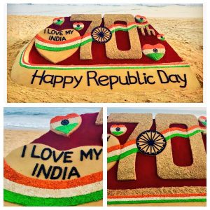 ବିଶିଷ୍ଟ ବାଲୁକାକଳା ଶିଳ୍ପୀ ସୁଦର୍ଶନ ତାଙ୍କର ବାଲୁକା କଳା ମାଧ୍ୟମରେ ଆଜି ସାରା ଦେଶରେ ପାଳିତ ହେଉଥିବା ସାଧାରଣତନ୍ତ୍ର ଦିବସକୁ ସ୍ଥାନ ଦେଇଛନ୍ତି ।