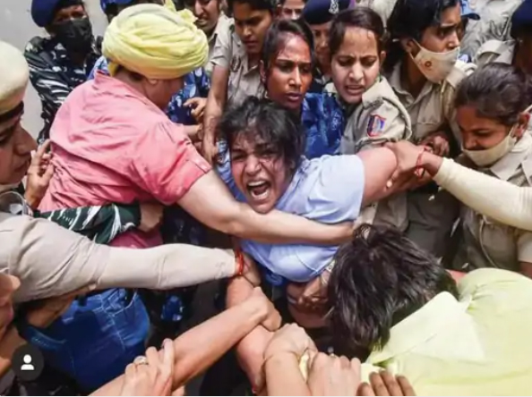 ନୂଆଦିଲ୍ଲୀ: ଭାରତୀୟ କୁସ୍ତି ସଂଘ ଅଧ୍ୟକ୍ଷ ବ୍ରିଜଭୂଷଣ ଶରଣ ସିଂଙ୍କ ବିରୋଧରେ ଦୁଷ୍କର୍ମ ଅଭିଯୋଗ ଆଣି ରେସଲରମାନେ ଜନ୍ତରମନ୍ତରରେ ଧାରଣା ଦେଉଥିଲେ । ନୂତନ ସଂସଦ ଭବନ ସାମ୍ନାକୁ ଯିବା ନେଇ ଜିଦ ଧରିବାକୁ ରେସଲର ଓ ପୋଲିସ ମଧ୍ୟରେ ସଂଘର୍ଷ ହୋଇଥିଲା । ପୋଲିସ ଏହା ପରେ କାର୍ଯ୍ୟାନୁଷ୍ଠାନ ଗ୍ରହଣ କରି ବିନେଶ ଫୋଗଟ, ସାକ୍ଷୀ ମଲିକ, ବଜରଙ୍ଗ ପୁନିଆଙ୍କ ପରି ରେସଲରଙ୍କୁ ଅଟକ ରଖିବା ସହ ଧାରଣାସ୍ଥଳର ତମ୍ବୁ ଭାଙ୍ଗି ଦେଇଥିଲେ । ୧୦୯ ଲୋକଙ୍କ ବିରୋଧରେ ଏଫଆଇଆର ରୁଜୁ କରାଯାଇଛି । ଏଥିରେ ଦଙ୍ଗା ସୃଷ୍ଟି କରିବା ଓ ସରକାରୀ କାର୍ଯ୍ୟରେ ବାଧା ଉତ୍ପନ କରିବା ଅଭିଯୋଗ ସାମିଲ ।