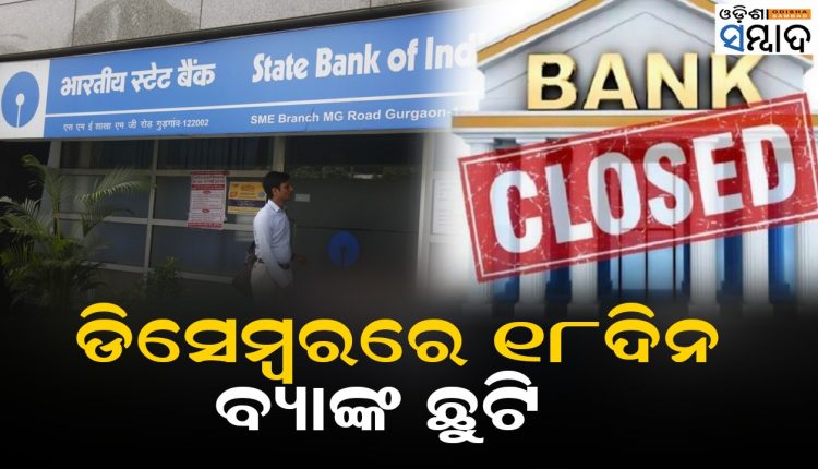 ବିଭିନ୍ନ ରାଜ୍ୟରେ ଡିସେମ୍ବର ମାସରେ ଶନିବାର ଏବଂ ରବିବାର ସମେତ ପୁରା ୧୮ ଦିନ ବ୍ୟାଙ୍କ ବନ୍ଦ ରହିବ | ଜାତୀୟ ଛୁଟି ବ୍ୟତୀତ ରିଜର୍ଭ ବ୍ୟାଙ୍କ ଅଫ୍ ଇଣ୍ଡିଆ ଦ୍ଵାରା ଜାରି କରାଯାଇଥିବା ଛୁଟି ତାଲିକାରେ ରାଜ୍ୟ ଅନୁଯାୟୀ ପର୍ବ ଏବଂ ବାର୍ଷିକୀ ଛୁଟି ମଧ୍ୟ ରହିଛି। ଡିସେମ୍ବରରେ, ବିଭିନ୍ନ ରାଜ୍ୟର ଫାଉଣ୍ଡେସନ ଡେ, ଖ୍ରୀଷ୍ଟମାସ ଇତ୍ୟାଦି ଯୋଗୁଁ ବ୍ୟାଙ୍କଗୁଡିକ ଲଗାତାର କିଛି ଦିନ ବନ୍ଦ ରହିବ ।