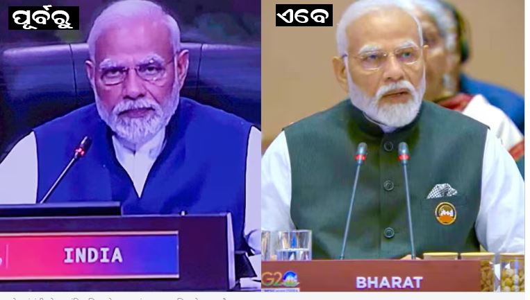 ଇଣ୍ଡିଆ ବନାମ ଭାରତକୁ ନେଇ ଶାସକ-ବିରୋଧୀ ମଧ୍ୟରେ ତୁତୁ-ମେମେ ଲାଗିଥିବାବେଳେ ଅନ୍ତରାଷ୍ଟ୍ରୀୟ ମଞ୍ଚରେ ମୋଦି ସରକାର ଏକ ବଡ ପଦକ୍ଷେପ ନେଇଛନ୍ତି । ନୂଆଦିଲ୍ଲୀରେ ଆରମ୍ଭ ହୋଇଥିବା ଜି-୨୦ ସମ୍ମିଳନୀର ଆଜି ପ୍ରଥମ ଦିନ । ଆଜି ଏହି ବୈଠକରେ ପ୍ରଧାନମନ୍ତ୍ରୀ ମୋଦି ବିଶ୍ୱ ନେତାଙ୍କୁ ସମ୍ବୋଧନ କରିଥିଲେ । ତାଙ୍କ ଟେବୁଲରେ ରଖା ଯାଇଥିବା କଣ୍ଟ୍ରି ପ୍ଲେଟରେ ଦେଶର ନାମ ଇଣ୍ଡିଆ ବଦଳରେ ଲେଖା ଯାଇଥିଲା ଭାରତ । ଏହା ପୂର୍ବରୁ ପ୍ରଧାନମନ୍ତ୍ରୀ ଯେଉଁସବୁ ଅନ୍ତର୍ଜାତୀୟ ମଞ୍ଚକୁ ସମ୍ବୋଧନ କରିଛନ୍ତି ସେଠାରେ କଣ୍ଟ୍ରିପ୍ଲେଟ ଉପରେ ଇଣ୍ଡିଆ ଲେଖା ଯାଇଥାଏ । ହେଲେ ପ୍ରଥମ ଥର ପାଇଁ ଆଜି ଏପରି ପରିବର୍ତ୍ତନ ଦେଖିବାକୁ ମିଳୁଛି ।