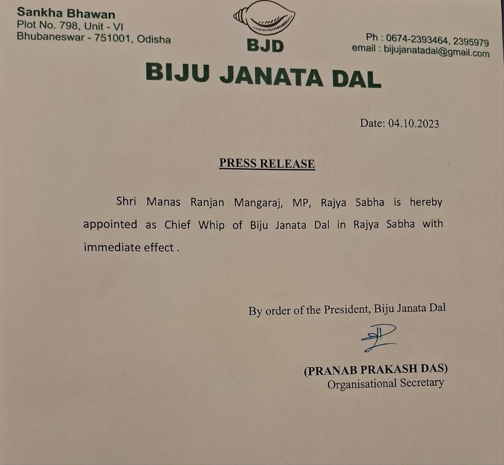 ୨୦୦୨ ଜୁଲାଇରେ ବିଜେଡିର ବରିଷ୍ଠ ନେତା ମାନସ ମଙ୍ଗରାଜ ରାଜ୍ୟସଭାଙ୍କୁ ମନୋନୀତ ହୋଇଥିଲେ । ତାଙ୍କ ସହ ସୁଲତା ଦେଓ ଏବଂ ସସ୍ମିତ ପ୍ରଧାନ ମଧ୍ୟ ରାଜ୍ୟ ସଭାକୁ ଯାଇଥିଲେ । ସାଂସଦ ମଙ୍ଗରାଜ ରାଜ୍ୟ ସରକାରଙ୍କର ମିଡିଆ ଏବଂ ଲୋକ ସଂପର୍ମ ଉପଦେଷ୍ଟା ଦାୟିତ୍ୱ ମଧ୍ୟ ତୁଲାଉଥିଲେ ।