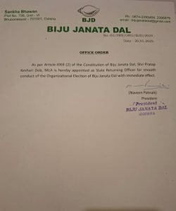 ଭୁବନେଶ୍ୱର: ବିଜୁ ଜନତା ଦଳର ସାଙ୍ଗଠନିକ ନିର୍ବାଚନ ପରିଚାଳନା ପାଇଁ ସୋମବାର ନିର୍ବାଚନ ଅଧିକାରୀ ନିଯୁକ୍ତ ହୋଇଛନ୍ତି । ଦଳର ସଭାପତି ନବୀନ ପଟ୍ଟନାୟକ ବିଜୁ ଜନତା ଦଳର ବରିଷ୍ଠ ବିଧାୟକ ତଥା ବିରୋଧୀ ଦଳ ଉପମୁଖ୍ୟ ସଚେତକ ପ୍ରତାପ କେଶରୀ ଦେବଙ୍କୁ ନିର୍ବାଚନ ଅଧିକାରୀ ଭାବେ ନିଯୁକ୍ତ କରିଛନ୍ତି । ଏନେଇ ବିଜେଡି ପକ୍ଷରୁ ଏକ ବିଜ୍ଞପ୍ତି ପ୍ରକାଶ ପାଇଛି ।