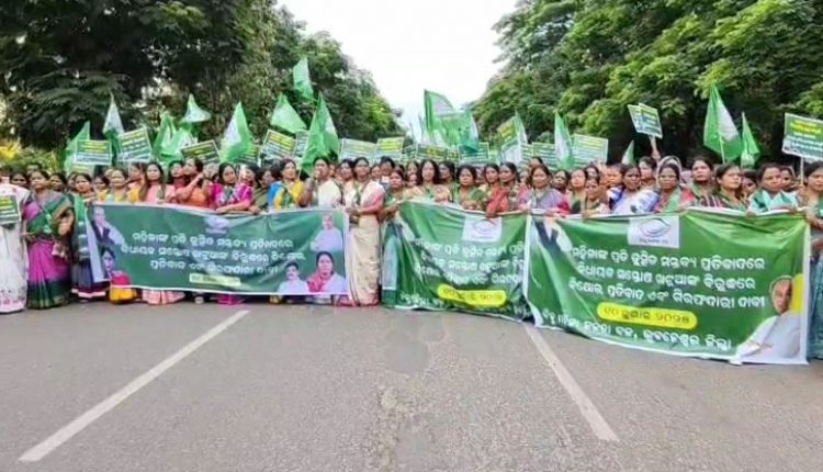 ଭୁବନେଶ୍ୱର : ନୀଳଗିରିର ବିଜେପି ବିଧାୟକ ସୁକାନ୍ତ ଖଟୁଆଙ୍କ ବିରୋଧରେ ବାହାରିଛି ରାଜ୍ୟ ମହିଳା ବିଜେଡି । ସୁକାନ୍ତଙ୍କୁ ଗିରଫ ଦାବି କରି ରାଜ୍ୟ ମହିଳା ବିଜେଡି ରାଜରାସ୍ତାକୁ ଓହ୍ଲାଇଛି । ଶତାଧିକ ବିଜେଡି ମହିଳା କର୍ମୀ ଏକତ୍ରିତ ହୋଇ ନୀଳଗିରି ବିଜେପି ବିଧାୟକ ସୁକାନ୍ତ ଖଟୁଆଙ୍କୁ ମନଇଛା ଶୁଣାଇଛନ୍ତି । ସୁକାନ୍ତଙ୍କୁ ବିରୋଧ କରି ରାଜମହଲ ଛକରୁ ବିଜେଡି ମହିଳା ମୋର୍ଚ୍ଚାର ଏକ ଶୋଭାଯାତ୍ରା ବାହାରିଥିଲା । ମହିଳାମାନେ ରାଲି କରି ନୀଳଗିରି ବିଧାୟକ ସୁକାନ୍ତ ଖଟୁଆଙ୍କୁ ଗିରଫ କରିବା ପାଇଁ ଦାବି କରିଛନ୍ତି । କିଛିଦିନ ତଳେ ବାଲେଶ୍ୱରର ବିଜେଡି ସାଂସଦ ପ୍ରାର୍ଥୀ ଲେଖାଶ୍ରୀ ସାମନ୍ତସିଂହାଦରଙ୍କୁ ନୀଳଗିରି ବିଧାୟକ ସୁକାନ୍ତ ଖଟୁଆ ଗଣମାଧ୍ୟମରେ ଅଶାଳୀନ ବ୍ୟବହାର କରିଥିଲେ । ଏହାର ପ୍ରତିବାଦରେ ବିଜେଡି ମହିଳା କର୍ମୀ ଓ ନେତାମାନେ ଏକତ୍ରିତ ହୋଇ ରାସ୍ତାକୁ ଓହ୍ଲାଇଥିଲେ । ରାଜମହଲରୁ ମହିଳାମାନେ ଶୋଭାଯାତ୍ରା କରି ମାଷ୍ଟରକ୍ୟାଂଟିନ ଛକରେ ସୁକାନ୍ତ ଖଟୁଆଙ୍କ କୁଶପୁତ୍ତଳିକା ଦାହ କରିଥିଲେ । ଏହି ଶୋଭାଯାତ୍ରାରେ ବିଜେଡି ବିଧାୟିକା ପ୍ରମିଳା ମଲ୍ଲିକ, ଟୁକୁନି ସାହୁ, ଲେଖାଶ୍ରୀ ସାମନ୍ତସିଂହାର, ରାଜଶ୍ରୀ ମଲ୍ଲିକ ପ୍ରମୁଖ ଉପସ୍ଥିତ ଥିଲେ । ତୁରନ୍ତ ସୁକାନ୍ତ ଖଟୁଆଙ୍କୁ ଗିରଫ କରାଯାଉ ବୋଲି ବିଜେଡି ତରଫରୁ ଦାବି କରାଯାଇଥିଲା । ସୁକାନ୍ତଙ୍କୁ ଗିରଫ ସହ ତାଙ୍କୁ ବିଧାୟକ ପଦରୁ ଇସ୍ତଫା ଦେବାକୁ କୁହାଯାଉ ବୋଲି ବିଜେଡି ନେତ୍ରୀମାନେ କହିଥିଲେ । ଯଦି ପ୍ରଶାସନ ଏଥିରେ ଅବହେଳା କରେ ତେବେ ଆଗାମୀ ଦିନରେ ବିଜେଡି ଆନ୍ଦୋଳନକୁ ଆହୁରି ତୀବ୍ରତର କରିବ ବୋଲି ଚେତାବନୀ ଦିଆଯାଇଛି ।