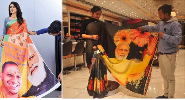 ସୁରଟରେ କରୋବାର କରୁଥିବା ଗୋରଖପୁର ଓ କାନପୁରର ୨ ବ୍ୟବସାୟୀ ୟୁପିର ୪୦ ଜିଲା ପାଇଁ ଶାଢ଼ୀ ବରାଦ କରିବେ । ଥ୍ରୀଡି ପ୍ରିଂଟର ଏହି ଶାଢ଼ୀରେ ବିଜେପିକୁ ସୁହାଇଲା ଭଳି ସ୍ଲୋଗାନ ଦିଆଯିବ । ଏହାର ଅନୁମାନିକ ମୂଲ୍ୟ ୨୦୦ରୁ ୫୦୦ ମଧ୍ୟରେ ରହିବ ।