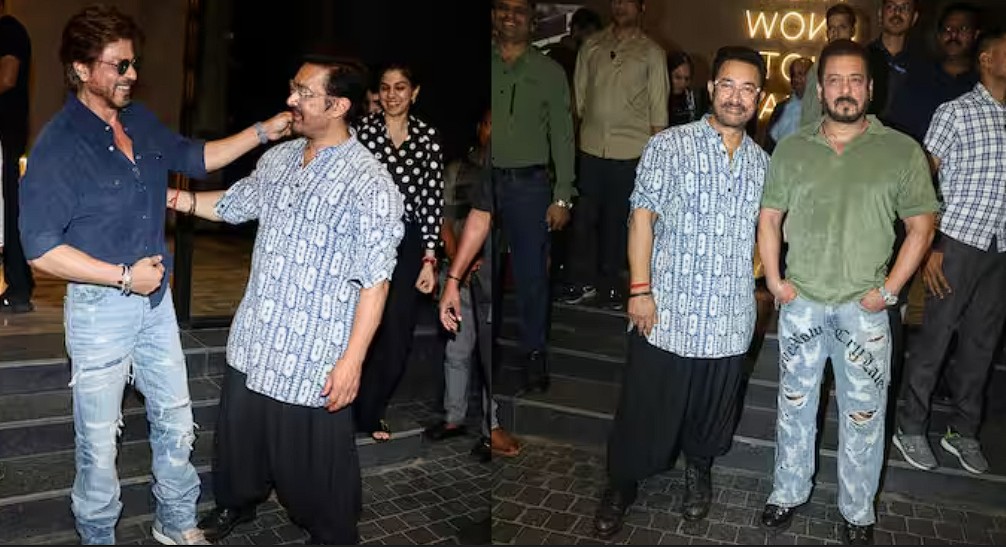 ମୁମ୍ବାଇ: ଏକାଠି ନଜର ଆସିଲେ ଅମୀର, ସଲମନ ଓ ଶାହରୁଖ । ମୁମ୍ବାଇରେ ବଲିଉଡର ଏକ ଫିଲ୍ମର ପ୍ରମୋଶନ ବେଳେ ନିଜର ଷ୍ଟାଇଲିସ୍ ଅନ୍ଦାଜରେ ସାମ୍ନାକୁ ଆସିଲେ ଏହି ତିନି ସୁପରହିରୋ। ସ୍କ୍ରିନିଂରେ ଶାହରୁଖ ଖାନଙ୍କୁ ନୀଳ ସାର୍ଟ ଏବଂ ଡେନିମ୍ ଜିନ୍ସ ପିନ୍ଧିଥିବାର ଦେଖାଯାଇଥିଲା। ସେ କଳା ରଙ୍ଗର ପୋଷାକ ପିନ୍ଧିଥିଲେ। ଶାହରୁଖ ଆମିର ଏବଂ ଜୁନୈଦଙ୍କ ସହ ମଧ୍ୟ ପୋଜ୍ ଦେଇଥିଲେ।