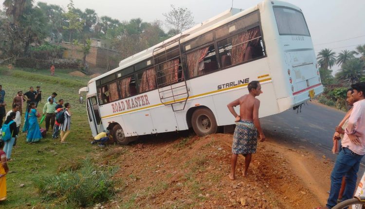 ରାସ୍ତା ତଳକୁ ଖସିଲା ବସ୍‌ , ଅଳ୍ପକେ ବର୍ତ୍ତିଲେ ଯାତ୍ରୀ