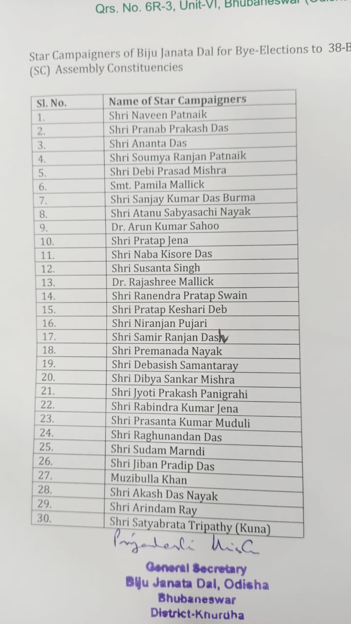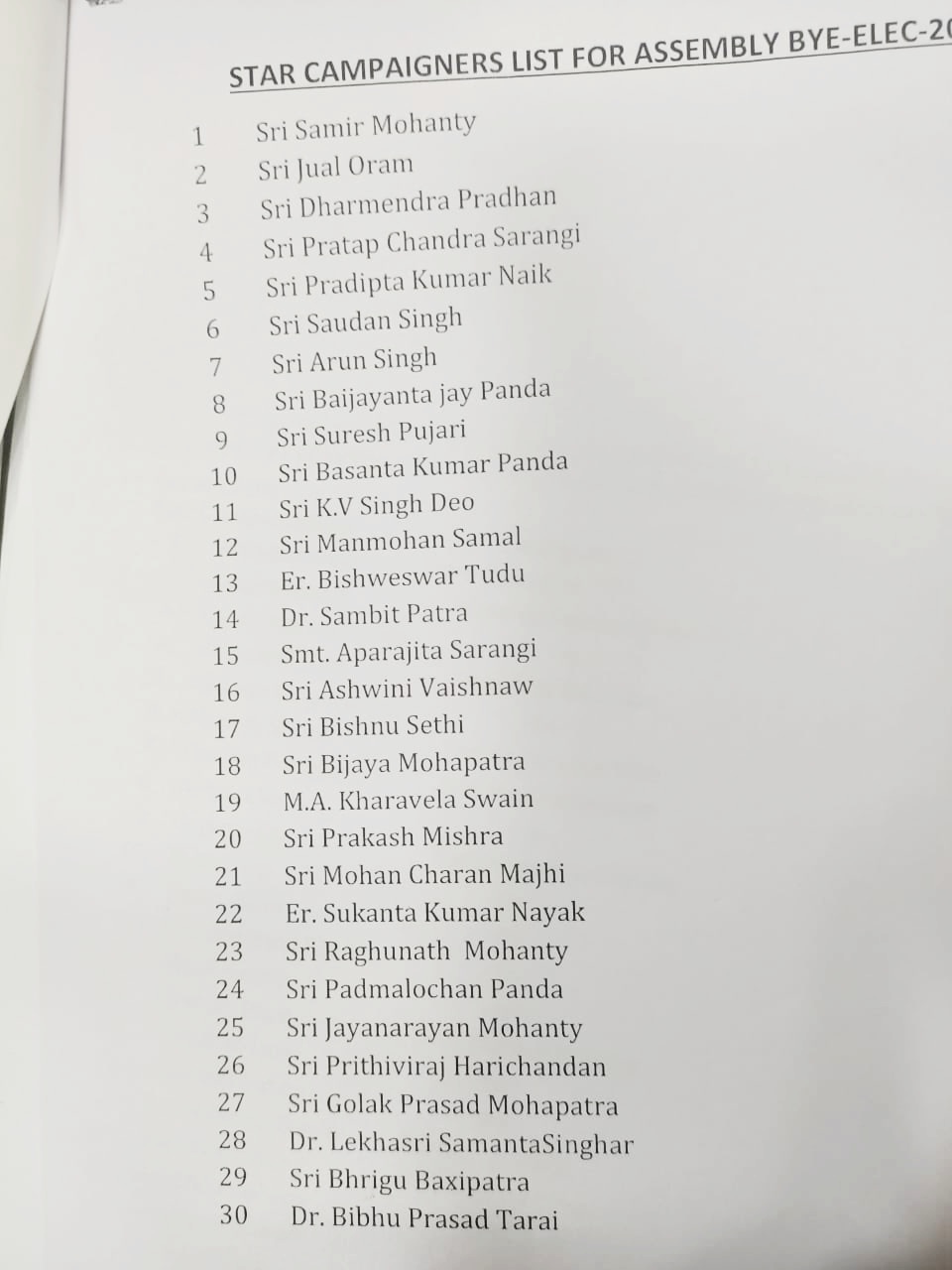 ସେହିପରି ବିଜେପି ପକ୍ଷରୁ ମଧ୍ୟ ୩୦ ଷ୍ଟାର କାମ୍ପେନରଙ୍କ ନାମ ଘୋଷଣା କରାଯାଇଛି ।
