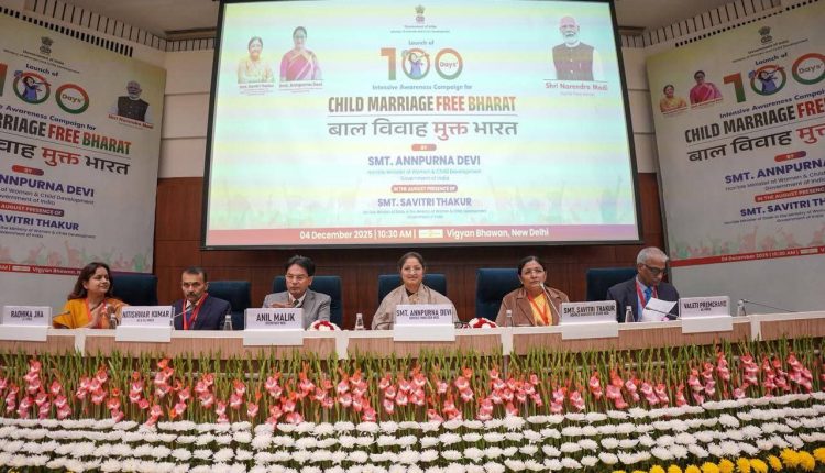 ଭୁବନେଶ୍ୱର: ମହିଳା ଏବଂ ଶିଶୁ ବିକାଶ ମନ୍ତ୍ରଣାଳୟ ଆଜି ନୂଆଦିଲ୍ଲୀର ବିଜ୍ଞାନ ଭବନରେ ବାଲ୍ୟ ବିବାହ ମୁକ୍ତ ଭାରତ ଗଠନ ପାଇଁ ୧୦୦ ଦିନିଆ ସଘନ ସଚେତନତା ଅଭିଯାନ ଆରମ୍ଭ କରିଛି। ବାଲ୍ୟ ବିବାହ ମୁକ୍ତ ଭାରତ ଅଭିଯାନର ପ୍ରଥମ ବାର୍ଷିକୀ ଅବସରରେ ଏହି ଅଭିଯାନ ଆରମ୍ଭ କରାଯାଇଛି ।