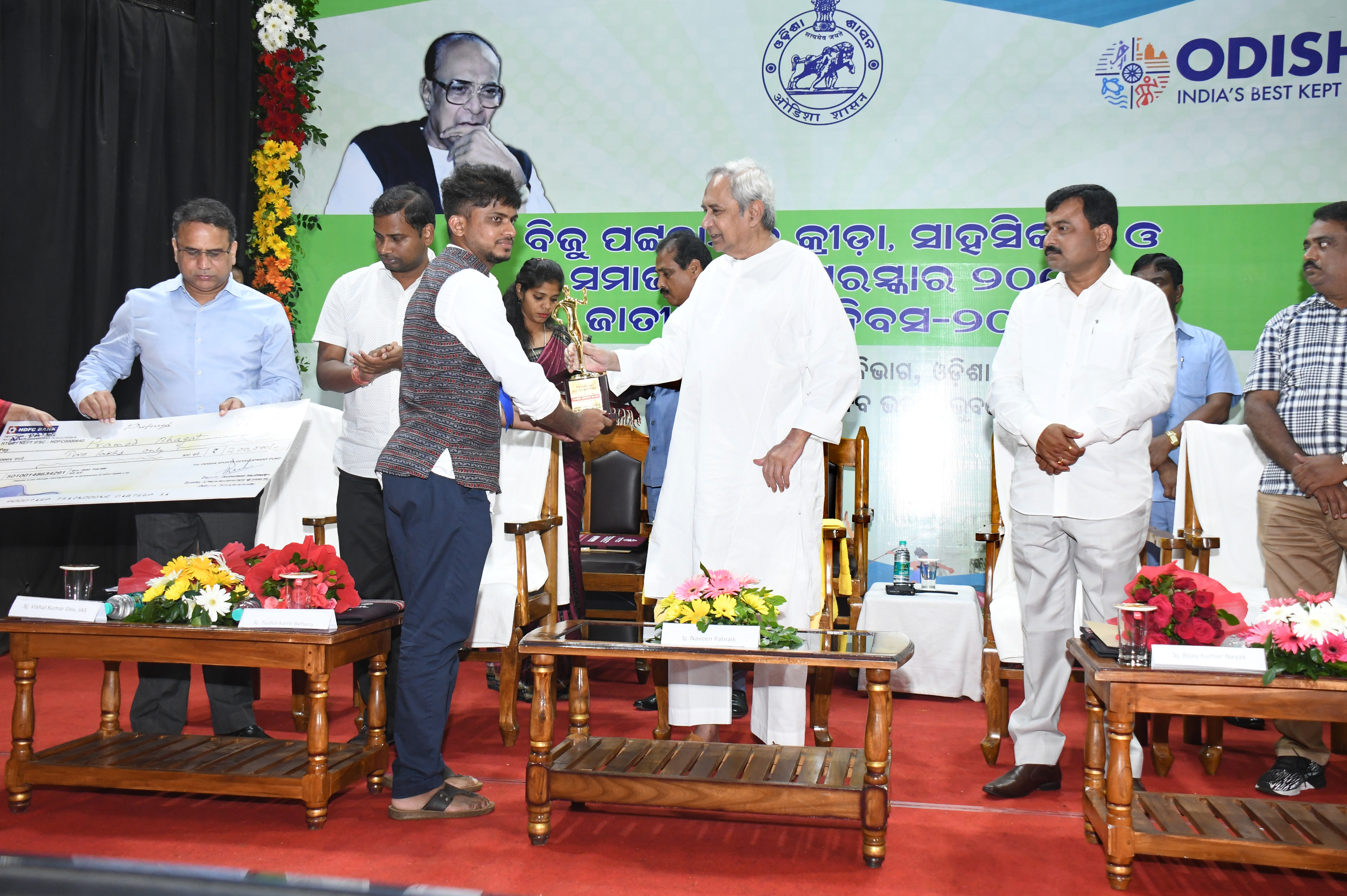 କ୍ରୀଡା ପାଇଁ ପାରା ବ୍ୟାଡମିଣ୍ଟନରେ ବିଶ୍ୱ ଚାମ୍ପିଅନସିପ୍ ହାସଲ କରିଥିବା ପ୍ରମୋଦ ଭଗତ ଏବଂ ସାହସିକତା ଲାଗି ଅନୁଗୁଳର ଭଦ୍ରାଙ୍କୁ ବିଜୁ ପଟ୍ଟନାୟକ ପୁରସ୍କାର ସହ ୨ ଲକ୍ଷ ଟଙ୍କା ଲେଖାଏଁ ଅର୍ଥରାଶି ଓ ମାନପତ୍ର ପ୍ରଦାନ କରାଯାଇଛି ।