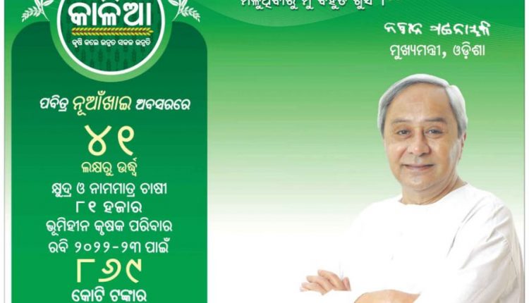 ମୁଖ୍ୟମନ୍ତ୍ରୀ ଶ୍ରୀ @Naveen_Odisha ପବିତ୍ର ନୂଆଁଖାଇ ଅବସରରେ ଚଳିତ ବର୍ଷ ରବି ଫସଲ ପାଇଁ ₹୮୬୯ କୋଟିର କାଳିଆ ସହାୟତା ପ୍ରଦାନର ଶୁଭାରମ୍ଭ କରିବାକୁ ଯାଉଛନ୍ତି। ଏଥିରେ ୪୧ ଲକ୍ଷରୁ ଉର୍ଦ୍ଧ୍ବ କ୍ଷୁଦ୍ର ଓ ନାମମାତ୍ର ଚାଷୀ ଏବଂ ୮୧ ହଜାର ଭୂମିହୀନ କୃଷକ ପରିବାର ଉପକୃତ ହେବେ।#OdishaCaresForFarmers @KALIAforOdisha pic.twitter.com/yjkQAqHOCs