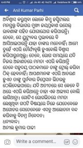 ତାଙ୍କର ଏହି ପୋଷ୍ଟଟିକୁ ସେ ପରବର୍ତ୍ତୀ ସମୟରେ ଡିଲିଟ୍ କରିଥିଲେ ମଧ୍ୟ ତାର ସ୍କ୍ରିନସର୍ଟ ଫେସବୁକରେ ଘୂରିବୁଲୁଛି । ପୁଣି ଅନ୍ୟ ଏକ ପୋଷ୍ଟରେ ନିଜର ମତ ଦେଇ ଶ୍ରୀ ପାଢ଼ୀ ଲେଖିିଛନ୍ତି ଯେ କୌଣସି କାହାଣୀର ପୁନର୍କଥନ ଦୋଷାବହ ନୁହେଁ । ସେ ଲୋକଙ୍କର ଏଭଳି ପ୍ରତିକ୍ରିୟାରେ ବିସ୍ମିତ ହେଉଛନ୍ତି ।