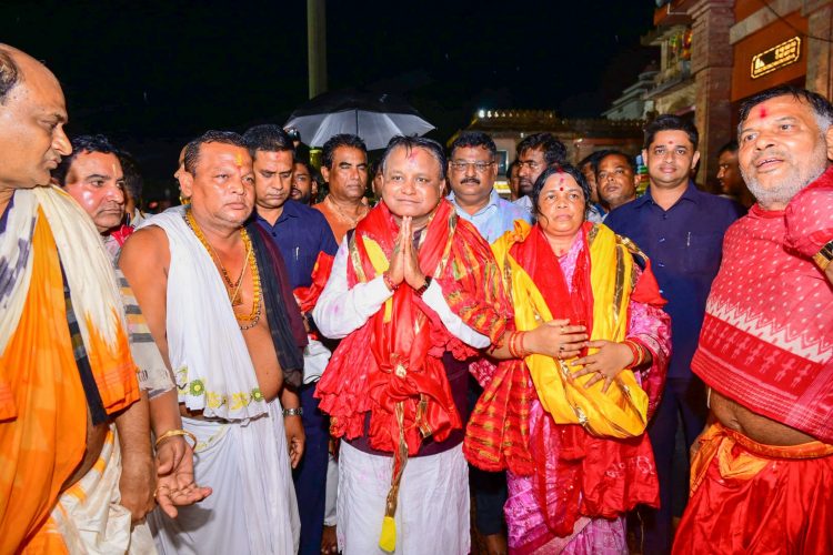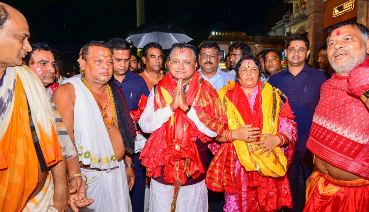 ପୁରୀ: ମୁଖ୍ୟମନ୍ତ୍ରୀ ମୋହନ ଚରଣ ମାଝି ପତ୍ନୀଙ୍କ ସହ ଶ୍ରୀମନ୍ଦିର ଯାଇ ମହାପ୍ରଭୁଙ୍କ ଦର୍ଶନ ଓ ପୂଜାର୍ଚ୍ଚନା କରିଛନ୍ତି।ଆଜି ସନ୍ଧ୍ୟାରେ ବର୍ଷା ସତ୍ତ୍ୱେ ସେ ଶ୍ରୀମନ୍ଦିର ଯାଇ ମହାପ୍ରଭୁଙ୍କ ଦର୍ଶନ କରିବା ସହ ରାଜ୍ୟର ମଙ୍ଗଳ କାମନା କରି ପ୍ରାର୍ଥନା କରିଛନ୍ତି।