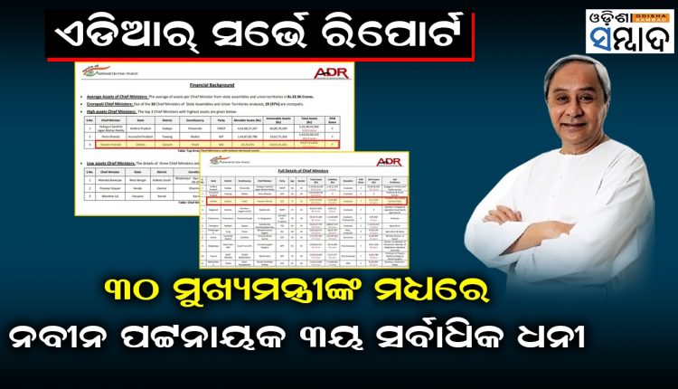 ଭୁବନେଶ୍ୱର: ଓଡ଼ିଶାର ମୁଖ୍ୟମନ୍ତ୍ରୀ ନବୀନ ପଟ୍ଟନାୟକ ଦେଶର ତୃତୀୟ ସର୍ବାଧିକ ଧନୀ ସିଏମ୍ । ଦେଶର ମୁଖ୍ୟମନ୍ତ୍ରୀମାନଙ୍କ ସମ୍ପତ୍ତି ଓ ଅପରାଧିକ ମାମଲା ଆଦି ବିଭିନ୍ନ ପ୍ରସଙ୍ଗକୁ ନେଇ ପ୍ରସ୍ତୁତ ADR ( ଆସୋସିଏସନ ଫର୍ ଡେମୋକ୍ରାଟିକ ରିଫର୍ମ୍ସ ) ରିପୋର୍ଟରୁ ଏହା ଜଣାପଡ଼ିଛି । ନବୀନଙ୍କ ସ୍ଥାବର ଓ ଅସ୍ଥାବର ସଂପତ୍ତି ମୂଲ୍ୟ ମୋଟ ୬୩ କୋଟି ଟଙ୍କା । ୨୦୨୩ର ADR ରିପୋର୍ଟ ଅନୁସାରେ ଦେଶର ଧନୀ ମୁଖ୍ୟମନ୍ତ୍ରୀ ଭାବେ ତାଲିକାର ପ୍ରଥମରେ ଅଛନ୍ତି, ଆନ୍ଧ୍ରପ୍ରଦେଶ ମୁଖ୍ୟମନ୍ତ୍ରୀ ଜଗନ ମୋହନ ରେଡ୍ଡୀ । ଜଗନ ମୋହନଙ୍କ ପାଖରେ ରହିଛି ୫୧୦ କୋଟି ଟଙ୍କାର ସମ୍ପତ୍ତି । ଦ୍ୱିତୀୟ ସ୍ଥାନରେ ଅଛନ୍ତି ଅରୁଣାଚଳ ପ୍ରଦେଶ ମୁଖ୍ୟମନ୍ତ୍ରୀ ପେମା ଖଣ୍ଡୁ । ତାଙ୍କ ସମ୍ପତିର ପରିମାଣ ୧୬୩ କୋଟି ।