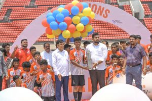 ରାଉରକେଲା: ମୁଖ୍ୟମନ୍ତ୍ରୀ ମୋହନ ଚରଣ ମାଝୀଙ୍କ ନେତୃତ୍ବରେ ଓଡ଼ିଶାରେ ତୃଣମୂଳ ସ୍ତରରେ କ୍ରୀଡ଼ା ପ୍ରତିଭାର ବିକାଶ ପାଇଁ ପ୍ରଥମ ଥର ପାଇଁ ଆୟୋଜନ କରାଯାଇଥିଲା ସିଏମ୍ ଟ୍ରଫି (ଅଣ୍ଡର-୧୫) ଫୁଟବଲ ଚାମ୍ପିୟନସିପ -୨୦୨୫। ଏହି ଟୁର୍ଣ୍ଣାମେଣ୍ଟର ଫାଇନାଲ୍ ମ୍ୟାଚ୍ ଆଜି ରାଉରକେଲା ସ୍ଥିତ ବିର୍ସାମୁଣ୍ଡା ଷ୍ଟାଡ଼ିୟମ୍ ଠାରେ ଅନୁଷ୍ଠିତ ହୋଇଯାଇଛି। ଆଜିର ଫାଇନାଲ୍ ମ୍ୟାଚ୍ ବରଗଡ଼ ଏଫସି ଏବଂ ଭୁବନେଶ୍ୱର ଏଫସି ମଧ୍ୟରେ ଅନୁଷ୍ଠିତ ହୋଇଥିଲା। ବରଗଡ଼ ଏଫସି ଭୁବନେଶ୍ୱର ଏଫସିକୁ ୩-୨ ଗୋଲ୍ ରେ ପରାସ୍ତ କରି ସିଏମ୍ ଟ୍ରଫି (ଅଣ୍ଡର-୧୫) ଫୁଟବଲ ଚାମ୍ପିୟନସିପ -୨୦୨୫ର ବିଜେତା ହୋଇଛି।