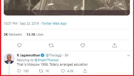 ଏହାବ୍ୟତୀତ ଏହି ଫଟୋଟି ପ୍ରକୃତରେ ଆମେରିକାର ନୁହେଁ ବରଂ ଏହା ମସ୍କୋରେ ପୂର୍ବତନ ସୋଭିୟତ ୟୁନିୟନରେ ନେହେରୁଙ୍କ ଫଟୋ । ଟ୍ୱିଟରରେ ଏହା ସମ୍ପୂର୍ଣ୍ଣ ମିଛକଥା ଏବଂ ଶଶୀ ଏହିପରି ମିଛ ଏବଂ ଭୂଲ୍ ତଥ୍ୟ କିପରି ହଜାର ହଜାର ଲୋକଙ୍କୁ ଦେଉଛନ୍ତି ବୋଲି ପ୍ରଶ୍ନ କରିଛନ୍ତି ଅନେକ ୟୁଜର୍ସ । ସେହିପରି ଜଗନ୍ନାଥନ ନାମକ ଜଣେ ସାମ୍ବାଦିକ ଏହି ଫଟୋଟି ଆମେରିକା ନୁହେଁ ବରଂ ମସ୍କୋର ବୋଲି ସୂଚନା ପ୍ରଦାନ କରିବା ପରେ ୟୁଜର୍ସମାନେ ଏହାର ସତ୍ୟାସତ୍ୟ ପରଖି ଶଶୀ ଥରୁରଙ୍କୁ କଟୁ ସମାଲୋଚନା କରିବାକୁ ପଛାଇନାହାନ୍ତି ।