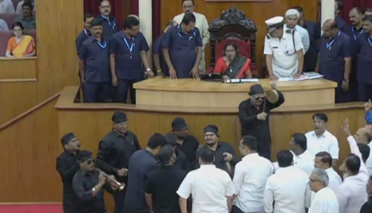 ଭୁବନେଶ୍ବର: ଚଲାଇ ଦେଉନାହାନ୍ତି ଗୃହ । ଆଜି ବି ବିରୋଧୀଙ୍କ ହାଇଡ୍ରାମା ଗୃହରେ ଦେଖିବାକୁ ମିଳିଛି । କଳା ଡ୍ରେସ୍ ପିନ୍ଧି ଘଣ୍ଟ ବାଡ଼େଇ ଗୃହ ଭିତରେ ହୋହାଲ୍ଲା କରି କଂଗ୍ରେସ ପ୍ରତିବାଦ କରିଛି । ବାଧ୍ୟ ହୋଇ ବାଚସ୍ପତି ୧୧.୩୦ ଯାଏଁ ଗୃହକୁ ମୁଲତବି କରିଛନ୍ତି । ନାରୀ ସୁରକ୍ଷାକୁ ନେଇ ବାରମ୍ବାର କଂଗ୍ରେସ ବିଧାୟକଙ୍କ ହଟ୍ଟଗୋଳ ଯୋଗୁଁ ଚାଲିପାରୁନି ଗୃହ ।