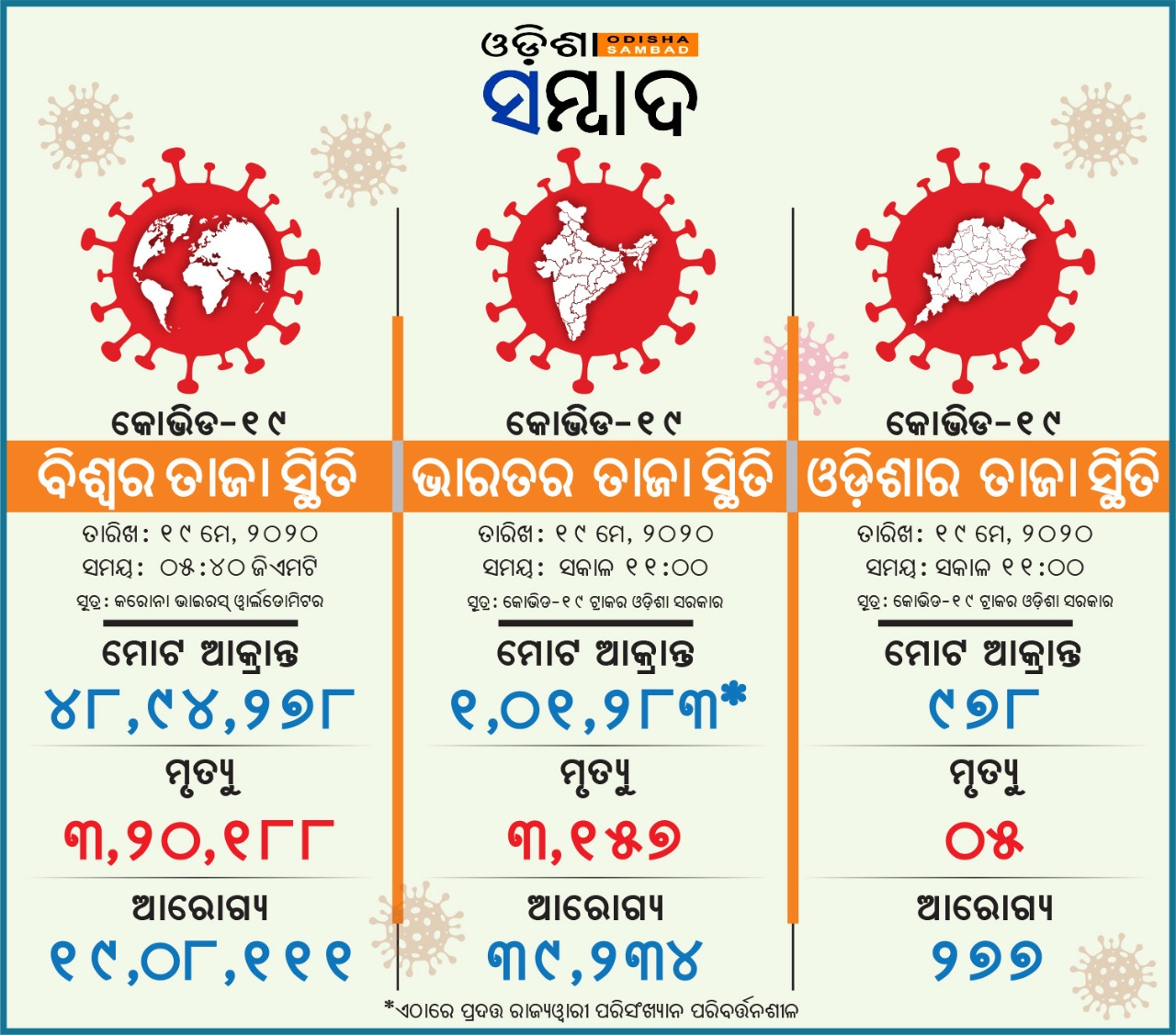 ସେହିପରି ସମଗ୍ର ବିଶ୍ୱରେ ମୋଟ ଆକ୍ରାନ୍ତଙ୍କ ସଂଖ୍ୟା ୪୮,୯୪,୨୭୮ ରହିଥିବା ବେଳେ ମୃତ୍ୟୁସଂଖ୍ୟା ୩,୨୦,୧୮୮ରେ ପହଞ୍ଚିଛି । ସମୁଦାୟଙ୍କ ଆକ୍ରାନ୍ତଙ୍କ ମଧ୍ୟରୁ ୧୯,୦୮,୧୧୧ ଜଣ ବ୍ୟକ୍ତି ଆରୋଗ୍ୟ ଲାଭ କରିଛନ୍ତି ।