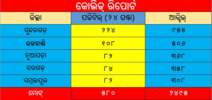 ଗତ ୨୪ ଘଣ୍ଟାରେ ସୁନ୍ଦରଗଡ଼ ଜିଲ୍ଲାରୁ ସର୍ବାଧିକ ୨୨୪ ସଂକ୍ରମିତ ଚିହ୍ନଟ ହୋଇଛନ୍ତି । କଳାହାଣ୍ଡିରୁ ୧୦୮ ଓ ବରଗଡ଼ରୁ ବାହାରିଛନ୍ତି ଆଉ ୮୪ ପଜିଟିଭ୍ । ନୂଆପଡ଼ା ଓ ସମ୍ୱଲପୁର ଜିଲ୍ଲାରୁ ୮୨ ଜଣ ଲେଖାଏ ଆକ୍ରାନ୍ତ ଚିହ୍ନଟ ହୋଇଛନ୍ତି । ଏହି ପାଞ୍ଚ ଜିଲ୍ଲାରୁ ଚିହ୍ନଟ ହୋଇଛନ୍ତି କେବଳ ୫୮୦ ଆକ୍ରାନ୍ତ । ଯାହାକି ମୋଟ୍ ସଂକ୍ରମିତଙ୍କ ୪୫ପ୍ରତିଶତ । ଛତିଶଗଡ଼ ସୀମାକୁ ଲାଗି ଥିବା ୧୦ ଜିଲ୍ଲାରେ ନାଇଟ୍ କର୍ଫ୍ୟୁ ଲାଗିଛି । ତଥାପି ସଂକ୍ରମଣ ଉପରମୁହାଁ ।