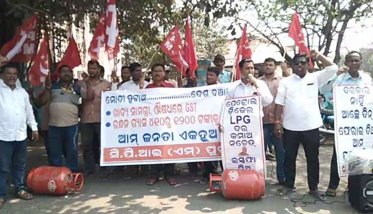 ରନ୍ଧନ ଗ୍ୟାସ ଦରବୃଦ୍ଧି ବିରୋଧରେ ଆଜି ସି.ପି.ଆଇ(ଏମ) ଦଳ ପକ୍ଷରୁ ଜିଲ୍ଲାପାଳ ଅଫିସ ସମ୍ମୁଖରେ ବିକ୍ଷୋଭ ପ୍ରଦର୍ଶନ କରିବା ସହିତ ପ୍ରଧାନମନ୍ତ୍ରୀଙ୍କୁ ଟାର୍ଗେଟ କରି ଦେଶ ବଞ୍ଚାଅ… ମୋଦି ହଟାଅ ବୋଲି ନାରା ଦିଆଯାଇଛି ।