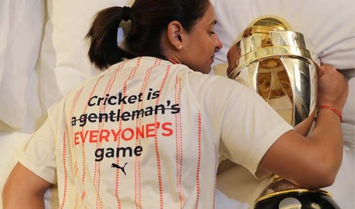 ସେ ଯେଉଁ ଜର୍ସି ପିନ୍ଧିଛନ୍ତି ସେଥିରେ କ୍ରିକେଟ ଇଜ ଏ ଜେଂଟଲମ୍ୟାନସ ଏଭ୍ରିୱାନ ଗେମ ଲେଖାଯାଇଛି । ଏଥିରେ ଏ ଜେଂଟଲମ୍ୟାନ୍ସ ଗେମ୍ସର ଲେଖାକୁ କଟାଯାଇଛି । ଏହାକୁ ପଢ଼ିଲେ କ୍ରିକେଟ ଇଜ ଏଭ୍ରିୱାନସ ଗେମ ହେଉଛି । ଜେଂଟଲମ୍ୟାନ୍ସ ଗେମ୍ସ ପରୋକ୍ଷରେ ମହିଳା ଖେଳାଳିଙ୍କ ପ୍ରତି ଅପମାନ ଭାବେ ବିବେଚନା କରାଯାଉଛି । ଜର୍ସିର ଲେଖା ମାଧ୍ୟମରେ ହରମନପ୍ରୀତ ଯେଉଁ ବାର୍ତା ଦେଇଛନ୍ତି ତାହା ସମସ୍ତଙ୍କୁ ପ୍ରଭାବିତ କରିଛି । ଭାରତ ଫାଇନାଲରେ ଦକ୍ଷିଣ ଆଫ୍ରିକା ସମ୍ମୁଖରେ ୨୯୯ ରନର ଲକ୍ଷ୍ୟ ରଖିଥିଲା । ଦକ୍ଷିଣ ଆଫ୍ରିକେ ୫୩ ରନରେ ଏହି ମ୍ୟାଚ ହାରି ଯାଇଥିଲା । ଏଥିସହ ଭାରତ ପ୍ରଥମ ଥର ପାଇଁ ବିଶ୍ୱକପ ଟାଇଟଲ ହାସଳ କରିଛି ।